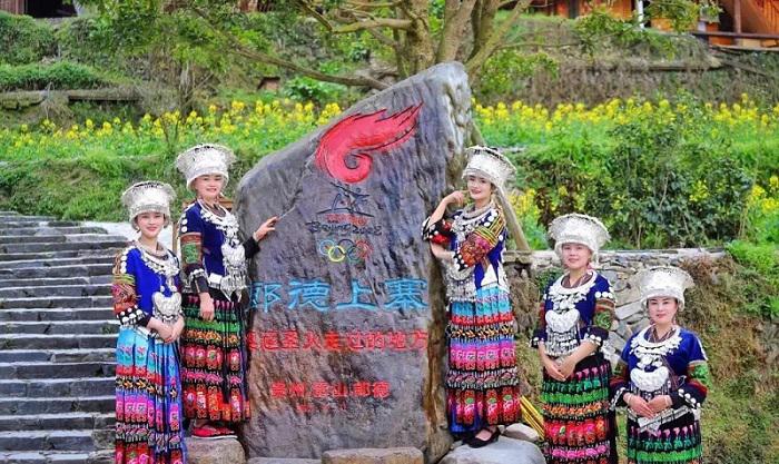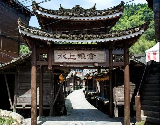 寨子四面群山环绕,背山面水。村前是一条清澈见底的溪流,跨溪建有风雨桥。到处可见用石头砌成的墙角和小路。这里是08奥运会火炬传递点之一,这里的芦笙场四周吊脚楼有百年历史,是国家重点保护文物。