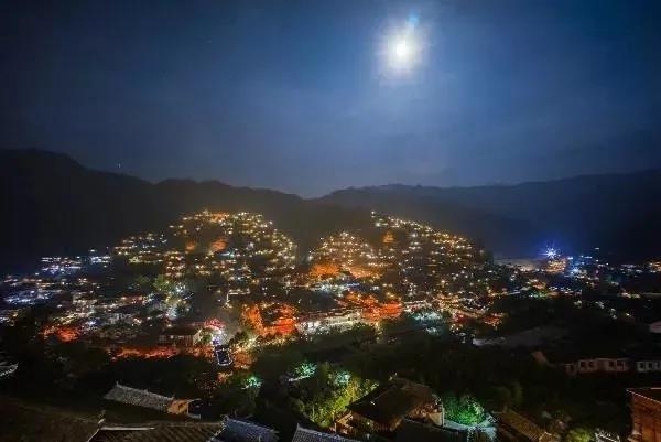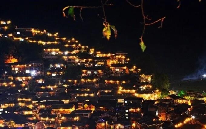 夜幕降临,千家万户灯火辉煌。吊脚楼、风雨桥华灯绽放,西江千户苗寨变成了灯的海洋。流光溢彩,交相辉映,苗寨的夜景美得沁人心脾。
