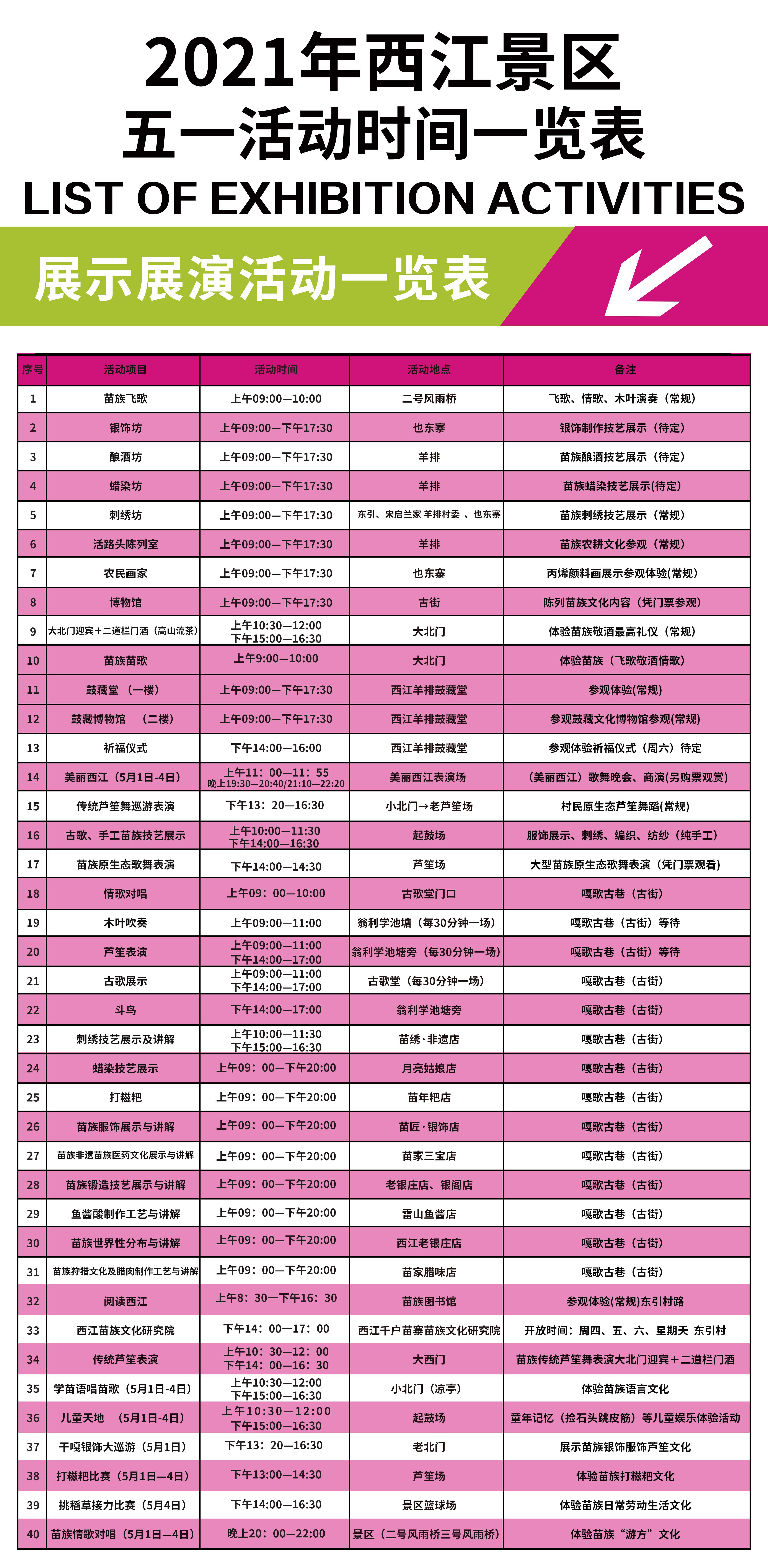 2021年五一期间西江景区活动时间一览表