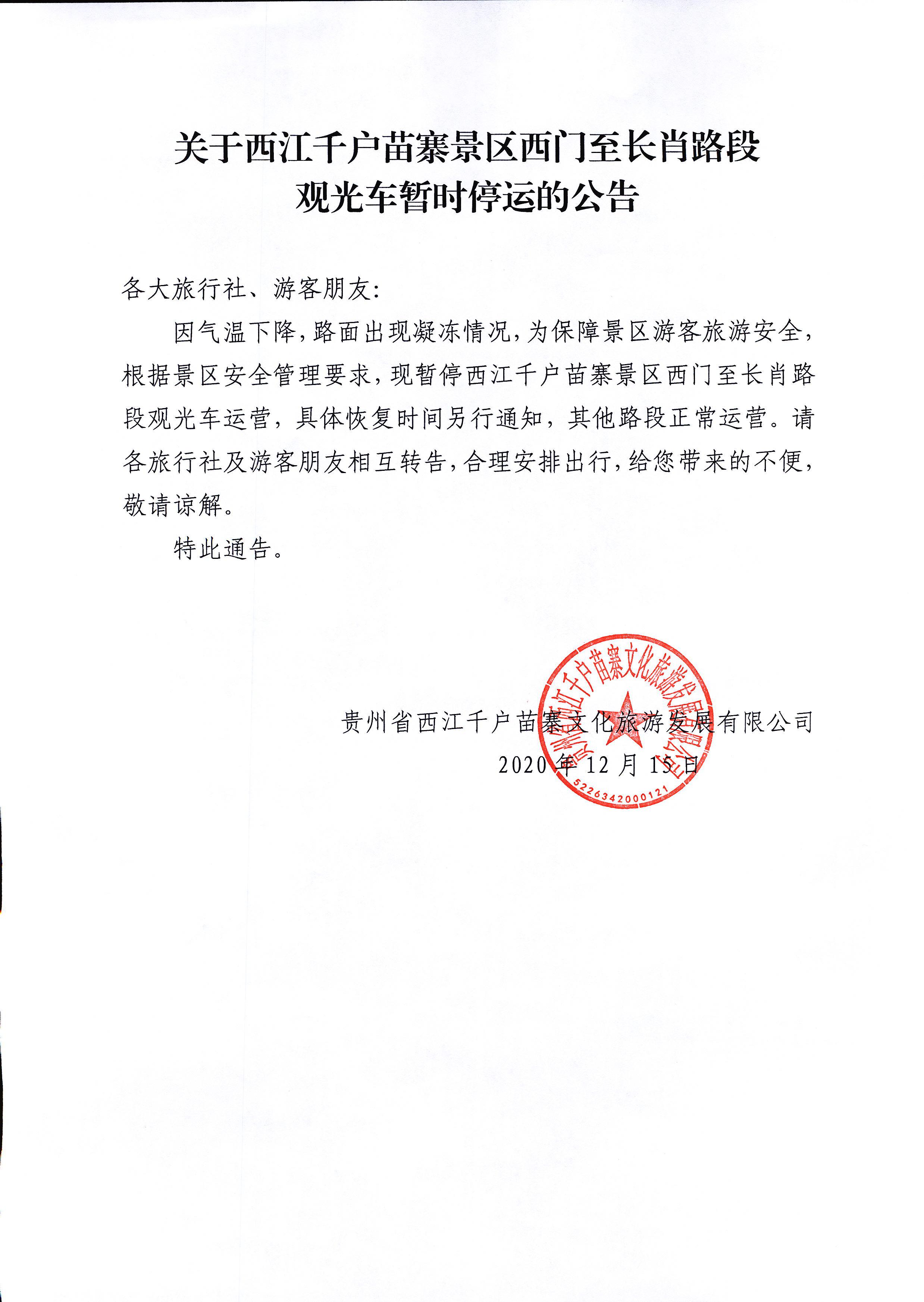 走进关于西江千户苗寨景区西门至长肖路段观光车暂时停运的公告