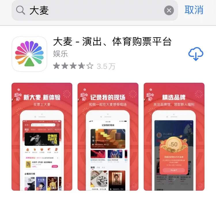 第一步:找到软件(应用)商城,下载“大麦”APP