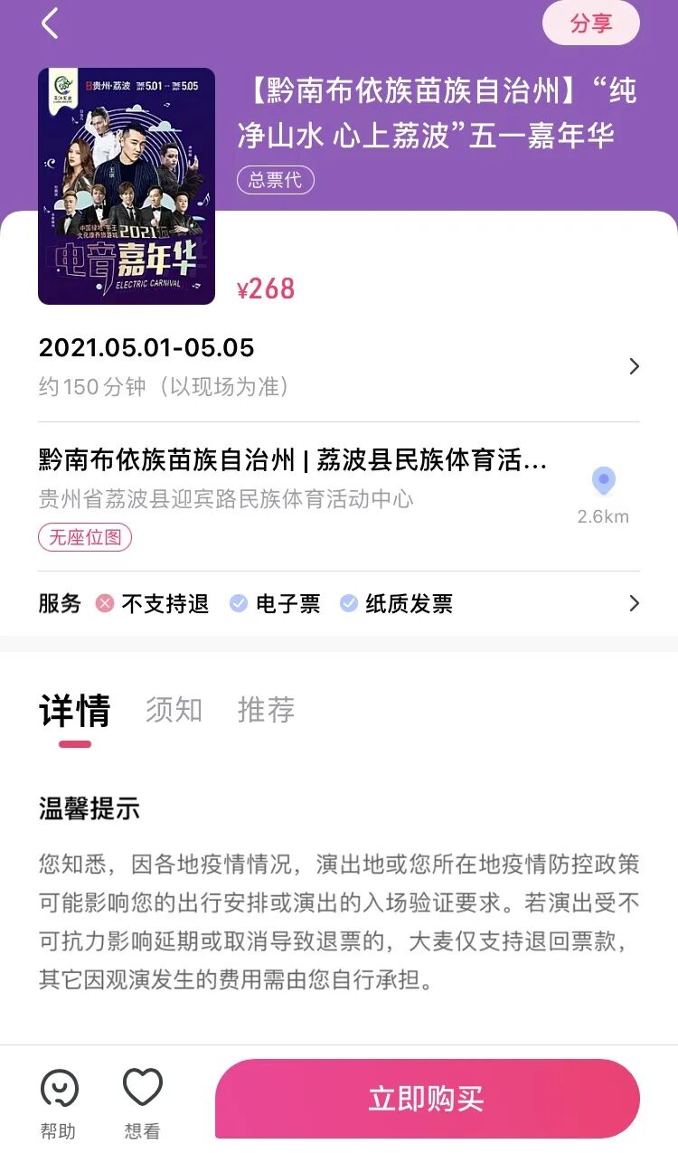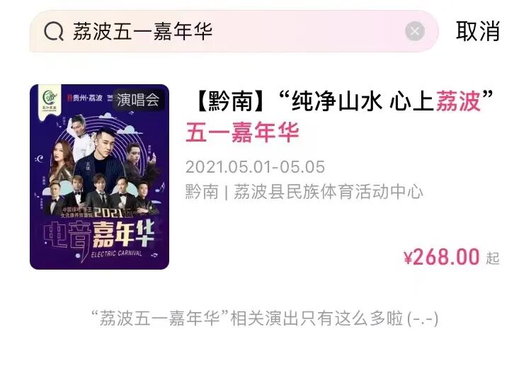 第二步:打开“大麦”,在搜索框输入“荔波五一嘉年华”
