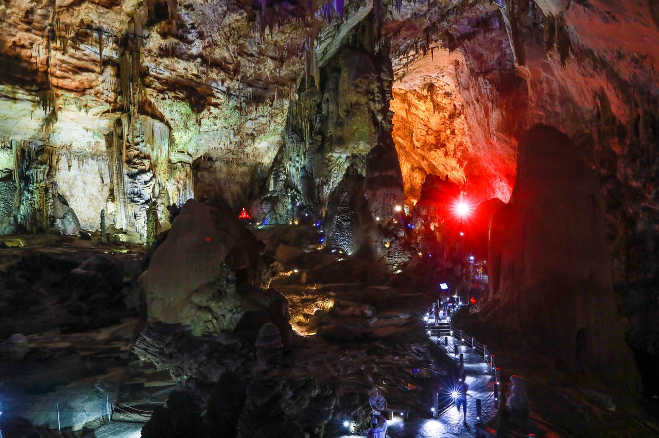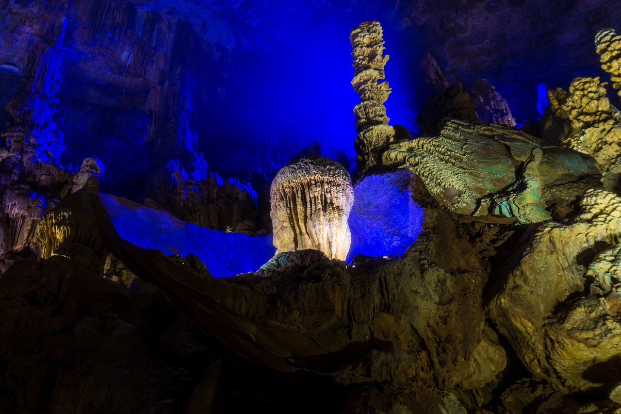且经历千万年间的变化,溶洞内的风景看上去更像是一幅幅唯美的画卷,又有“凌霄殿”、“迎宾厅” “广寒宫” “十万大山“等等惟妙惟肖的石柱群。身临其境之后才会感叹此种风景似乎只能出现在书本中。织金洞内还有多个世界之最。卷曲石举、银雨树、上百座金塔银塔,还有七彩斑斓的灯光,让各种奇石在灯光下,是那么不可思议的美却又不知如何形成成这种奇观。其实从洞的体积和堆积物上来看,比世界上譬如南斯拉夫、法国引以为傲的溶洞还要大三倍不止。