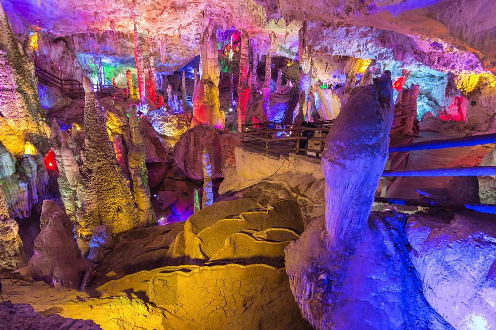 织金洞位于贵州省织金县,贵州的喀斯特地貌铸造了许多的溶洞,而织金洞就是其中之一,不仅如此,织金洞号称“中国十大奇洞”之首,国家自然遗产、4A级景区。织金洞洞长6.6公里、高150米,石柱、石芽、石棋等多种洞穴堆积物。独特的熔岩景观,洞道纵横交错、间歇水塘、地下湖这些自然奇观在织金洞都能见到,而且加上独特的灯光,就好像进入书中才能出现的异界洞府。而且不是人为自然形成的惟妙惟肖“婆媳情深”、“普贤骑象”、“凌霄殿”、“广寒宫”、等等叹为观止的自然奇观。织金洞内气势恢宏、瑰丽多姿、真可谓天上皇宫、人间仙境。但是溶洞内在三月较为寒冷,去观赏美景的同时一定要做好防寒措施噢,以免着凉感冒。
