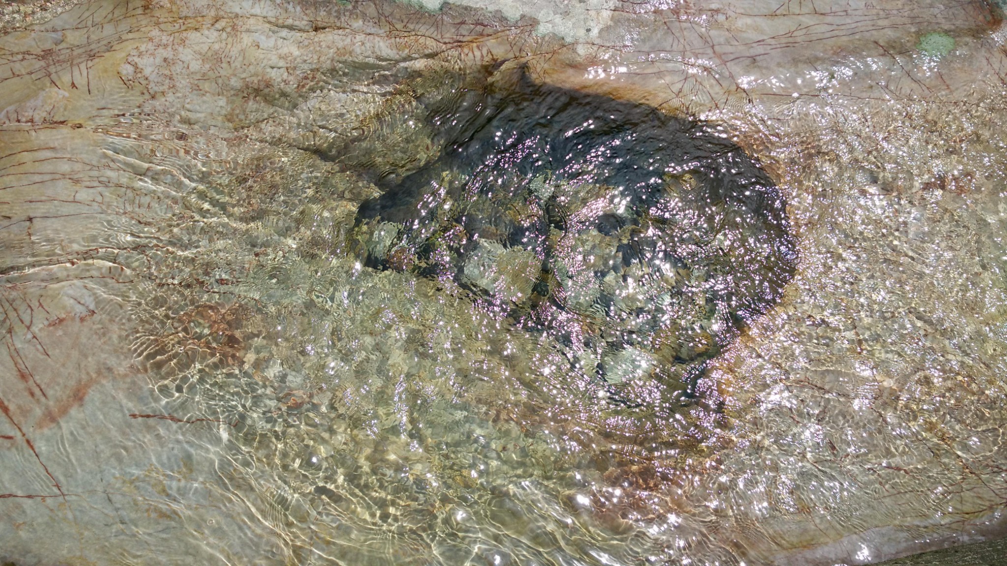 扎营点往前面探索就可以看到归兰山的小瀑布,瀑布下面是小潭。十分清澈,水也十分凉爽,爬上山以后大汗淋漓,跳在 水里 畅游,那感觉,只可意会,不可言传。一个字:爽。而且潜水到瀑布正下方,可以看到一颗圆形光滑的圆石,相传这就是镇山的“龙珠”。不要轻易搬动哦。潭水深处大概3米左右。