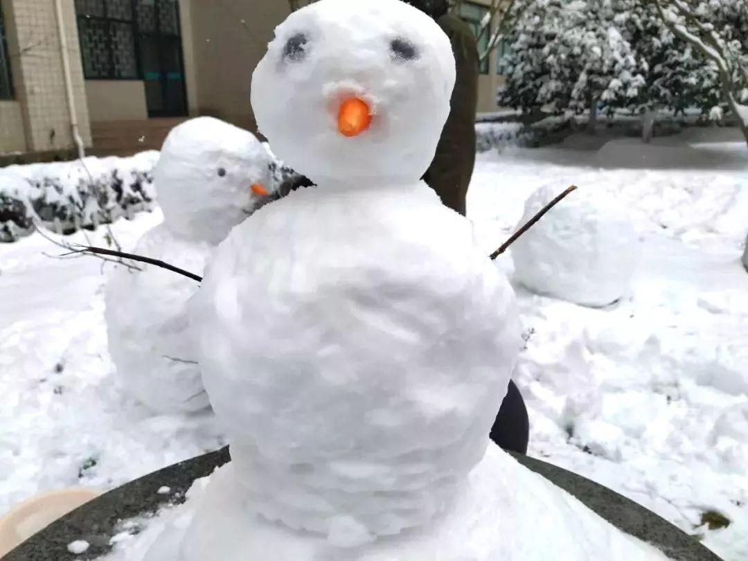 孩子们把雪花招集到一起,于是,一个可爱的雪人诞生了。
