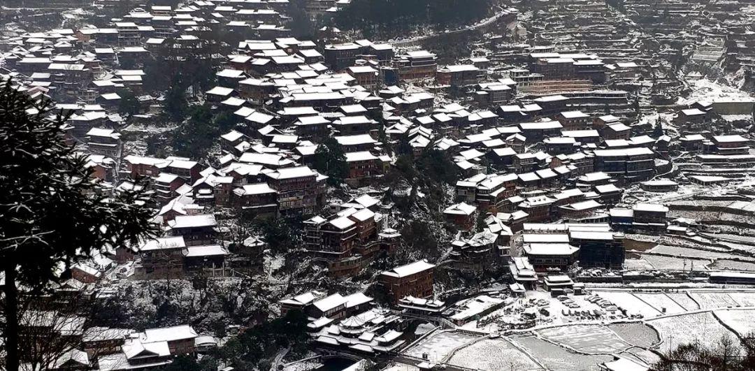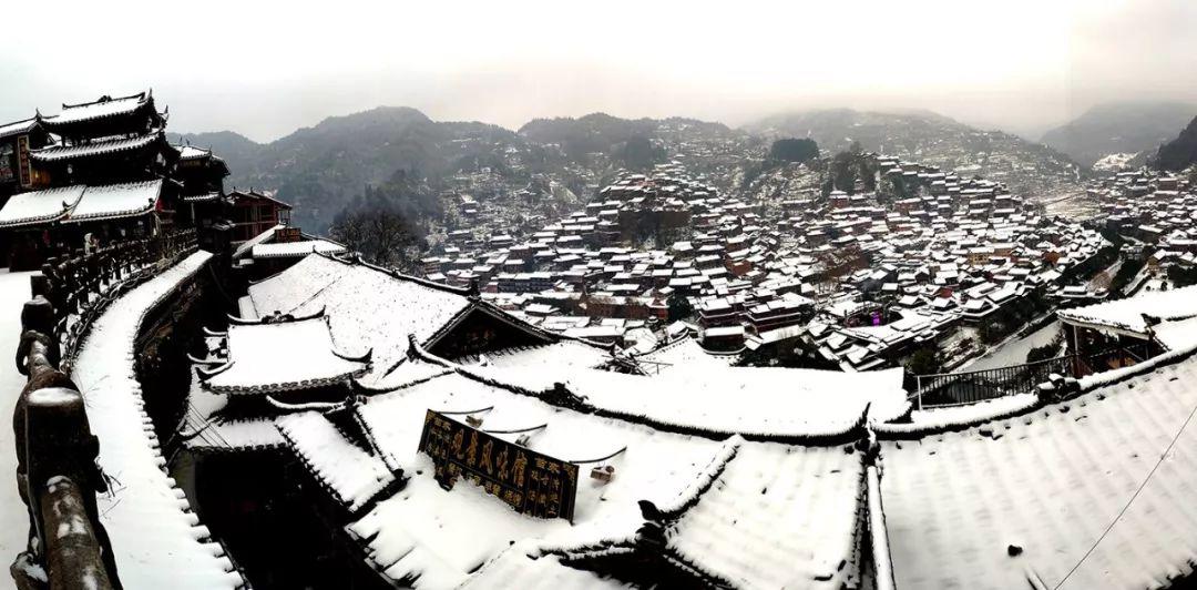 覆善了大地, 覆盖了吊脚楼,让千户苗寨穿上了