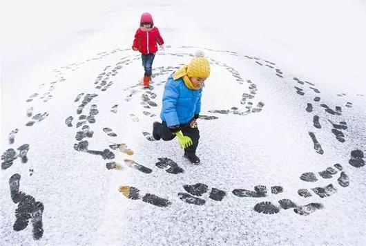 行人被脚下雪花弹奏的乐曲陶醉了心情。