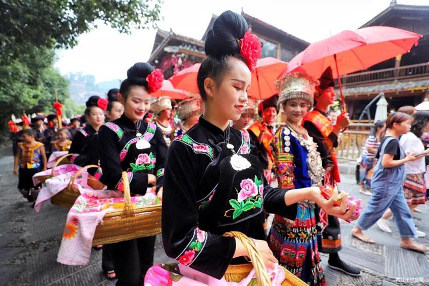 2019年9月6日—9月8日,以“浪漫游方 情醉西江”为主题的西江千户苗寨第八届游方之旅在西江千户苗寨举行。伴着悦耳动听的情歌对唱,苗族最古老的恋爱方式——“游方”就这样精彩地呈现在大家面前。