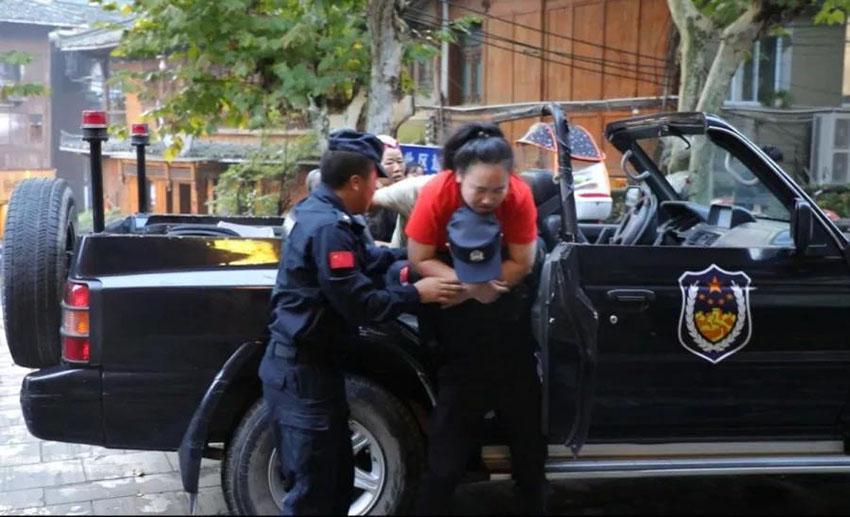 10月4日,前来西江景区旅游的一名女子突发疾病,脸色苍白,呼吸困难,身体状况十分危险,雷山县公安局执勤民警用警车充当救护车,将该女子急送医院救治。