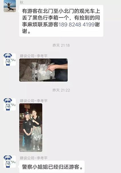 10月4日,一名女游客在进入景区游览时,不慎将行李包遗失在观光车上。幸得观光车驾驶员通过电话告知相关工作人员,十分钟后联系到失主,并将行李包及时归还。游客失而复得,心里万分感激。她夸赞道:西江景区不仅山美、水美,人心更漂亮,感谢西江千户苗寨的工作人员,向你们的拾金不昧致敬,为你们的真诚服务点赞!