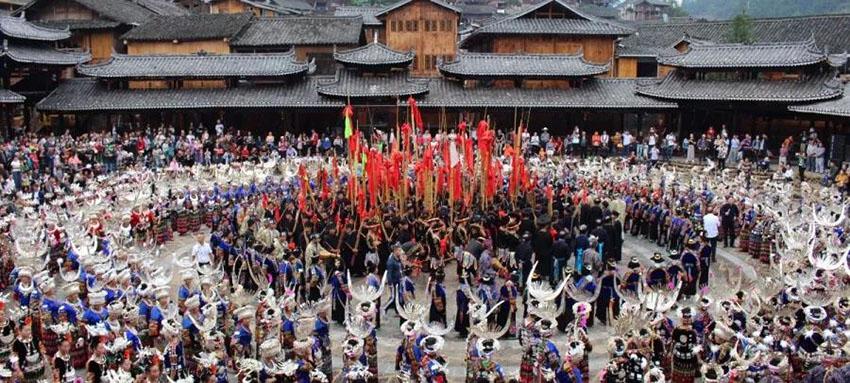 苗年是一年中最为重要的节日,苗年是苗家一年劳作的结束与欢乐的开始,苗年期间人们走村串寨,你迎我往,杀年猪、打糯米粑、祭祖、吃团年饭、喝串寨酒、跳芦笙舞,部分地区还举行斗牛、斗鸟、赛歌等活动,喜庆活动一个又一个,芦笙盛会一寨接一寨,欢乐一直持续到早春二月的“翻鼓节”。