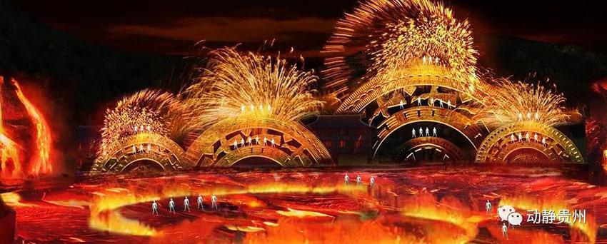 《西江盛典》以苗族5000年历史为背景,将苗族建筑、农耕、历史、民风民俗、歌舞等当地极具民族代表性的文化符号,注入“序幕·颂、祖·英雄、魂·跋涉、梦·家园、尾声·歌”五幕场景,演绎古老而神秘的苗族文化,展示出苗族人民守护家园的磅礴气势,该剧总投资3.6亿人民币。