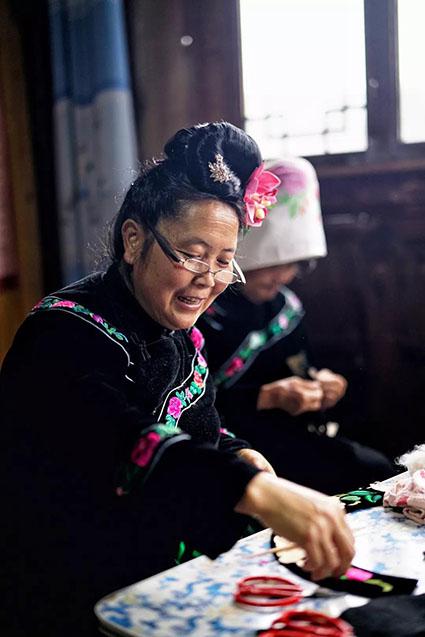 这里是李玉芳老师的家,同时是雷山苗绣传习所,也是国家级非物质文化遗产名录,李玉芳老师是非物质文化遗产苗绣县级代表性传承人,今年已经50多岁了,从10多岁就开始做苗绣。