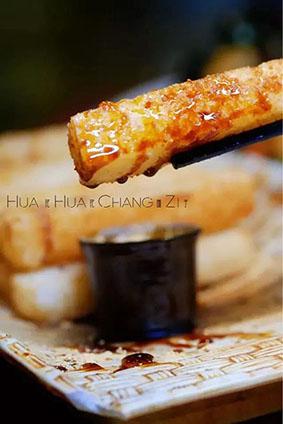 【农家小糍粑】炸得酥脆的糍粑,内部软糯不粘牙,再蘸上红糖、豆面,口感丰富。他家的红糖水味道很正,略带一点回苦的老红糖调成的。而且相当之浓稠,说是糖水不如说是糖汁。