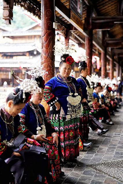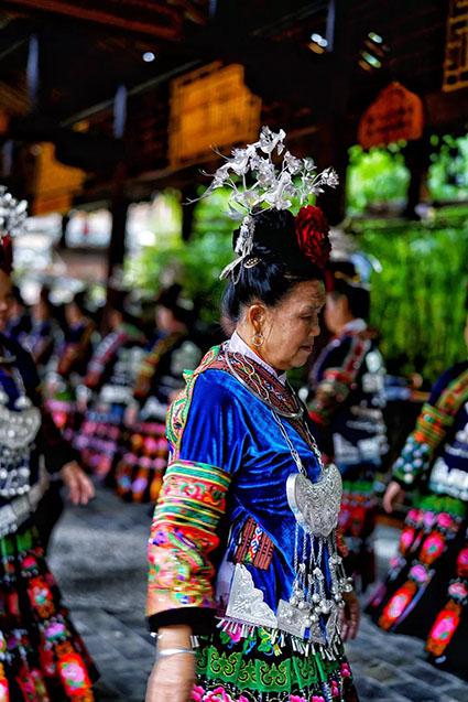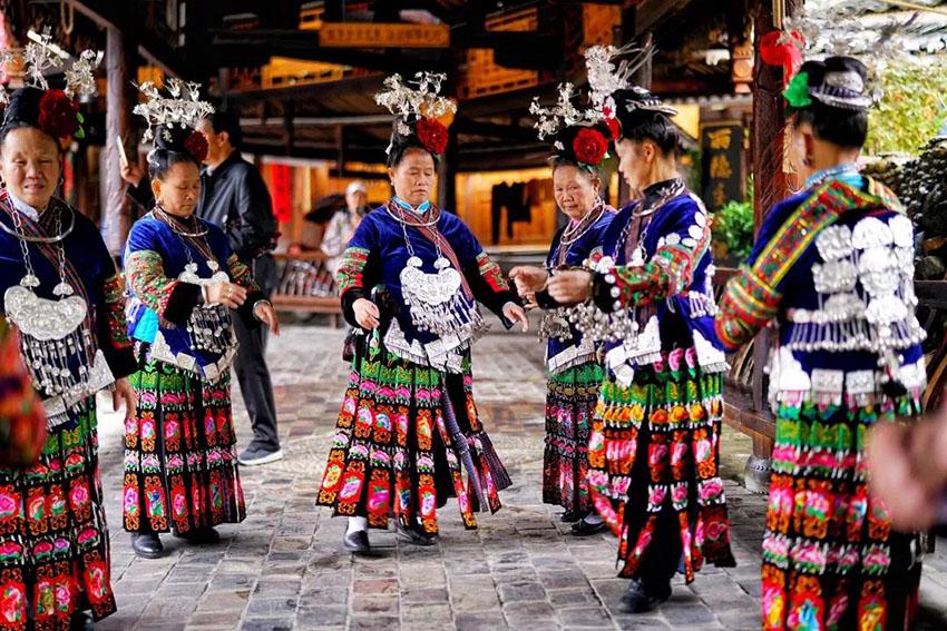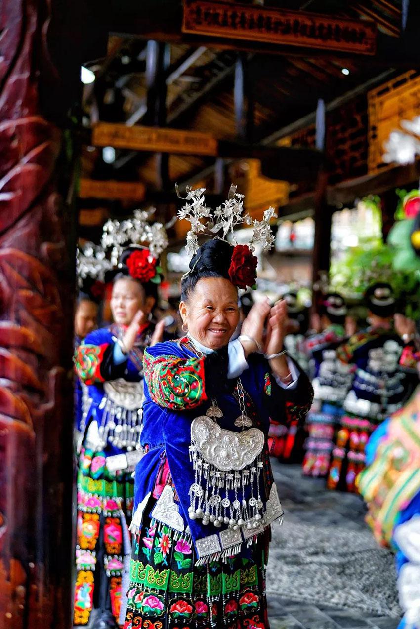 这里一整天都有盛装苗族阿姨原生态表演,有着浓浓的氛围,如果你拍照打卡,这里非常不错,不少游客都会选择在这里租借苗族服饰换上留影,或者和盛装的苗族阿姨们合照。