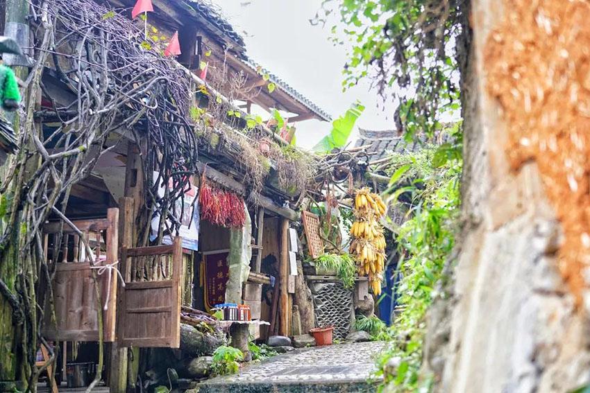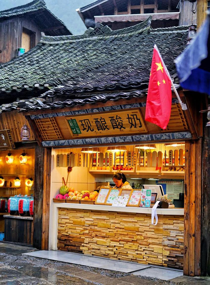 沿着寨子古道往上走,苗家原汁原味的吊脚楼鳞次栉比、衔首连尾而建,一路上你能发现不少的奇妙,有着苗族原住民的日常生活气息,每一个普普通通的小门面都很值得你前往探究。