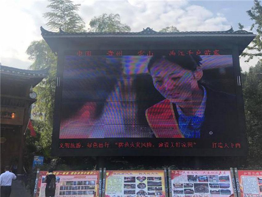 (图为西江景区LED大屏幕播放消防宣传视频及标语)