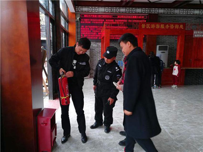 首先,针对西江苗寨各区域进行消防安全检查,主要对办公室区域、基础设施、表演场、各项消防设施等进行排查,重点针对各个区域消防安全布局是否合理,防火间距是否符合消防安全技术规范的要求,消防水源是否充足,消防车道是否畅通,消防安全责任制度是否落实,生产、经营和储存的操作流程是否符合消防安全规定,重点工种操作人员是否能够熟练操作灭火器材,有无醒目的消防安全标语、警语等情况进行了详细的检查。