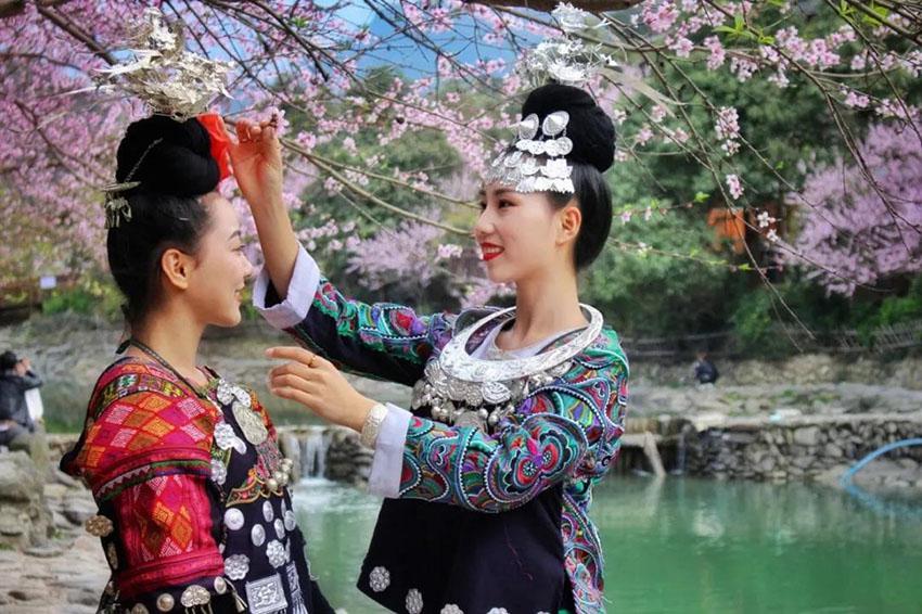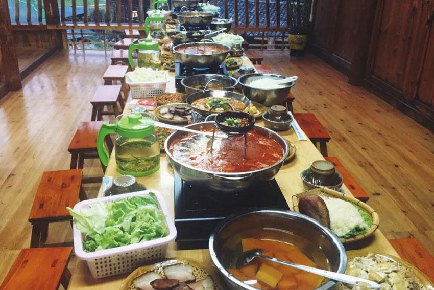 来到西江千户苗寨,当然不能错过品尝独具特色的苗寨“长桌宴”。特色酸汤鱼,苗家鼓藏肉,农家腊肉香肠,还有各种农户家的绿色蔬菜小炒。最美味的食物配,上苗家姑娘的敬酒歌,配上悠扬的芦笙曲、配上姑娘们碗里醇香的米酒,这才真真的感受到苗族平日的生活。