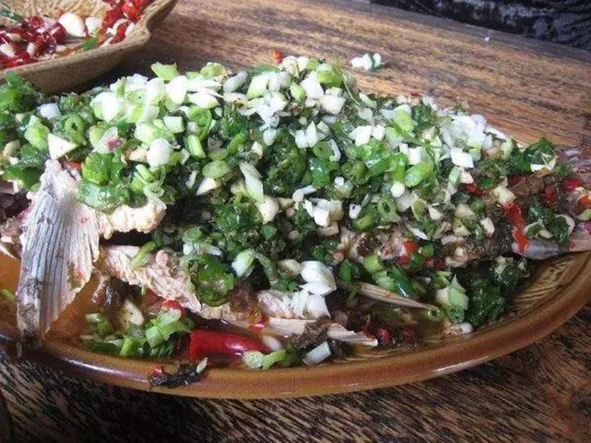 这是苗家宴请客人的名菜。苗王鱼味美肉鲜,许多外国游客吃后都称赞“到西江不吃苗王鱼等于到北京不吃北京烤鸭一样会终身遗憾”!
