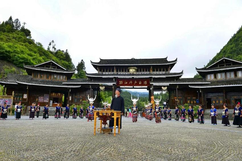 西江千户苗寨风景区座落于贵州省黔东南苗族侗族自治州雷山县东北部的雷公山山麓,是中国最大、世界无双的天下第一大苗寨。在这里,苗族农耕、节日、银饰、服饰、饮食、歌舞等民风民俗世代相传,是领略和认识中国苗族漫长历史与发展的首选之地,被中外学家和民俗学者誉为保存苗族“原始生态”文化比较完整的地方,有“中国苗都”的美誉 。它是一个保存苗族“原始生态”文化完整的地方,由10余个依山而建的自然村寨相连成片,是目前中国乃至全世界最大的苗族聚居村寨。它是领略和认识中国苗族漫长历史与发展之地。西江有远近闻名的银匠村,苗族银饰全为手工制作,其工艺具有极高水平。西江每年的苗年节、吃新节、十三年一次的牯藏节等均名扬四海,西江千户苗寨是一座露天博物馆,展览着一部苗族发展史诗,成为观赏和研究苗族传统文化的大看台。