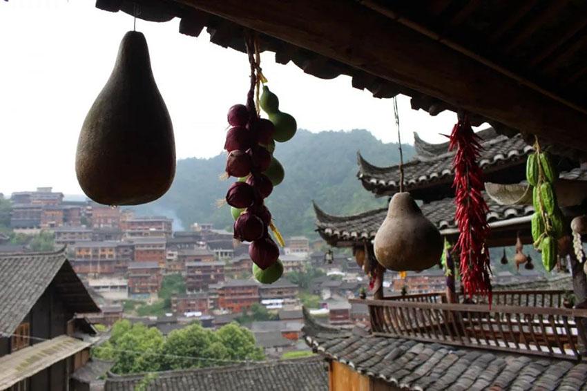 西江千户苗寨是一个保存苗族“原始生态”文化完整的地方,由10余个依山而建的自然村寨相连成片,是目前中国乃至全世界最大的苗族聚居村寨。苗寨的建筑以木质的吊脚楼为主。西江苗族吊脚楼源于干栏式建筑,与周围的青山绿水和田园风光融为一体,是中华上古居民建筑的活化石。