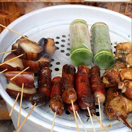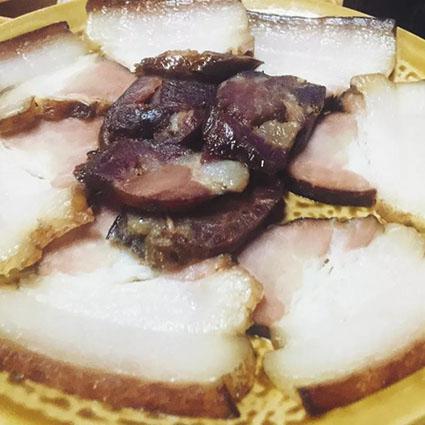 苗家三宝就是腊肉,腊肠,熏豆腐。熏好的腊肉,腊肠表里一致,蒸熟切成片,透明发亮,色泽鲜艳,黄里透红,吃起来味道醇香,风味独特,营养丰富。