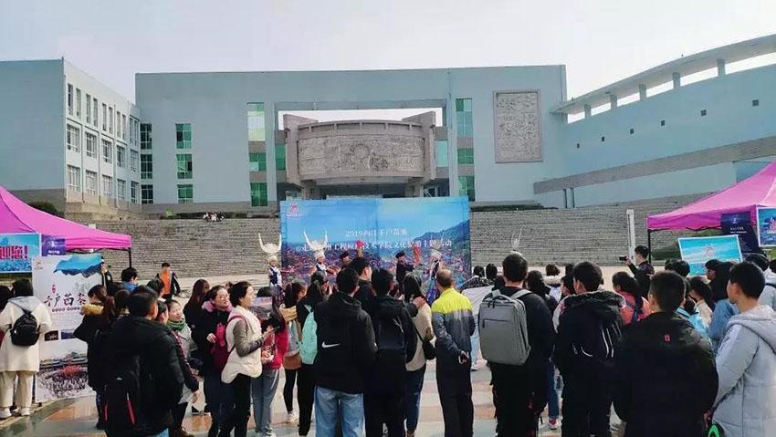 此次活动在贵州工程应用技术学院举行,来自西江千户苗寨的阿哥阿妹们,热情洋溢的为自己的家乡代言,积极分享家乡的美景美物。
