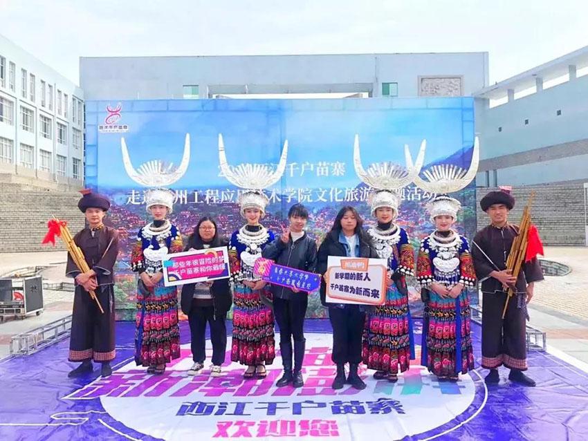为了让高校学子能够深入了解苗族文化,感受淳朴苗家民俗风情,丰富高校学子的校园生活,“2019西江千户苗寨走进高校文化旅游主题系列活动”已相继走进了贵州师范大学、贵州财经大学、贵州大学、贵州民族大学,于12月13日西江千户苗寨继续走进位于毕节地区的贵州工程应用技术学院,让苗族文化与大学生们面对面、零距离接触,让高校学子感受原汁原味的生态美景与苗族人文。