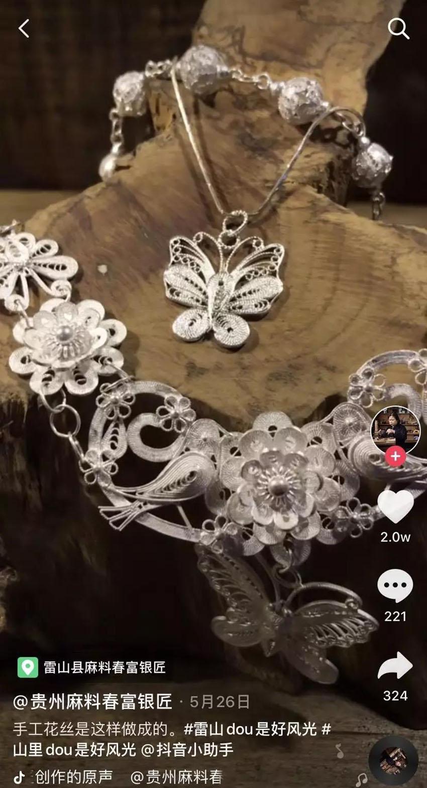 今年3月,“山里DOU是好风光”落地雷山后,锻制银饰的时候顺带拍摄视频,便成了潘仕学每天的日常。他将视频放上抖音,很快便收获了几十万的点赞。通过内容带动,潘仕学2个月在抖音收获了5万多元的银饰订单,还有60多位粉丝通过抖音慕名前往麻料村参观。