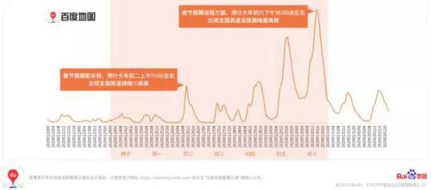 同时从大年初二(1月26日)开始,车流量也将明显上升,而全国高速返程拥堵最高峰将出现在大年初六(1月30日)下午16:00点左右。