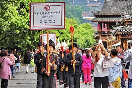 与流水绿树、古街木桥 、吊脚木楼相互辉映