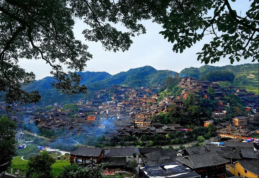 微风轻拂,“天下第一苗寨”西江,填满视野。看那古色的吊角木楼磷节批次相拥而居,中有翠树绿荫,边有阡陌纵横,炊烟袅袅,鸡犬相闻,寨前的白水河曲折如练在晚霞的余晖下泛起彩色的波光。依山而立的西江苗寨是一幅让千万人观赏就有千万种感觉的画卷。这是哪一位能师巨匠的千古佳作?你是否能读懂她的妙语佳句?