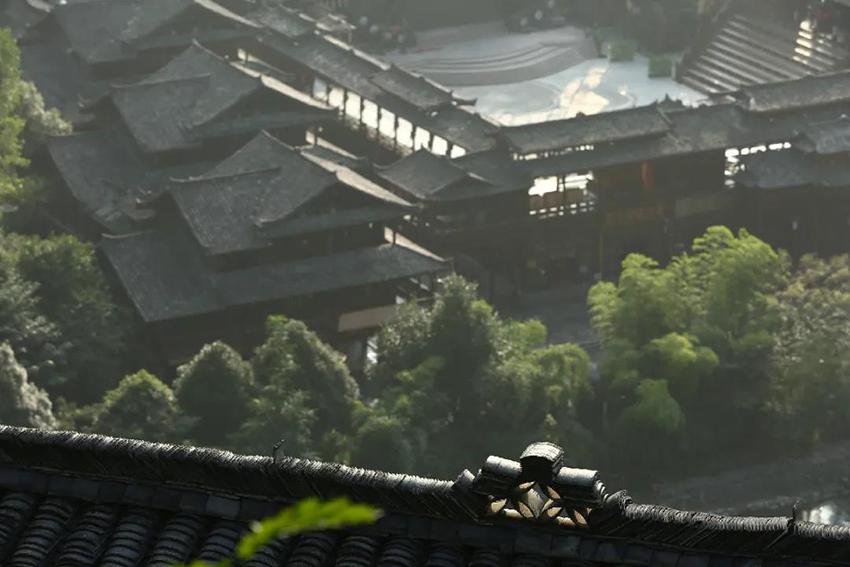 吊脚楼通常分为三层,第一层堆放生产工具、关养牲畜;第二层住人,中间是堂屋,两旁是厢房和卧室;第三层主要用来堆放粮食。