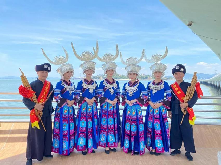 会场之外,苗家姑娘小伙身着盛装,在厦门大学、世贸海峡大厦、白城沙滩等地留下了美丽的足迹,较高的气温难挡来自黔东南的热情,路遇市民不断拿出手机拍照留影。