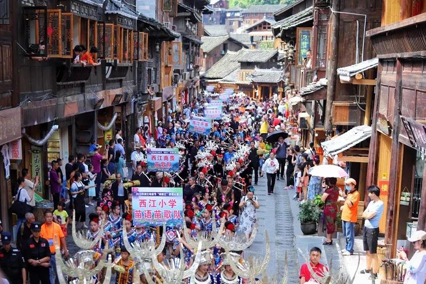 “五月莺歌燕舞日,又到粽味飘香时。”2020年的端午假期,西江千户苗寨景区全面落实 " 限量、预约、错峰 " 总要求和 " 防聚集、防拥堵、防扎堆 " 目标,全力抓好疫情防控常态化,实行进入景区 " 健康码、测体温、预约购票、刷身份证通行 "四部曲。