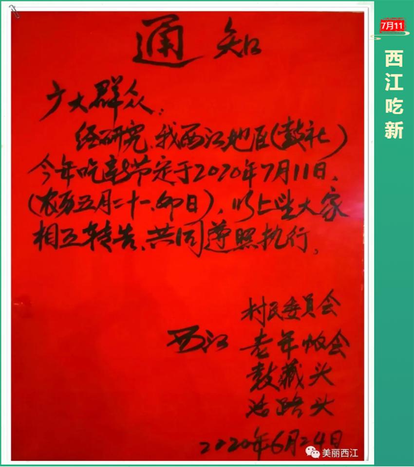 经西江村委会、西江村老年协会、西江苗寨鼓藏头、西江苗寨活路头研究,西江苗寨2020年“吃新节”时间得以确定。具体是时间为公历7月11日,星期六(农历5月21日)。
