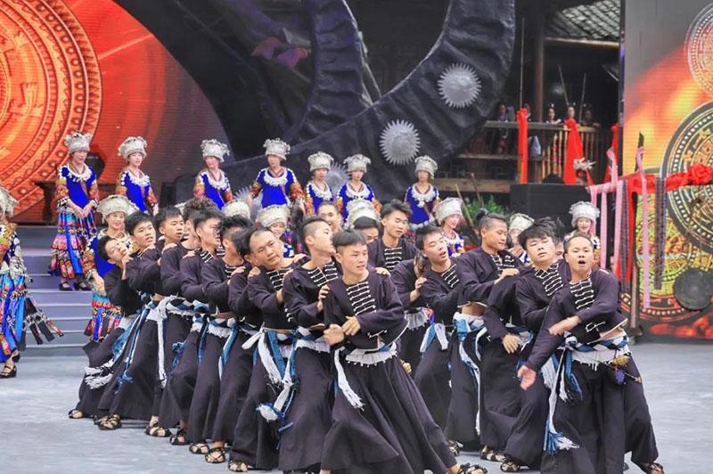全国首部以苗族文化为内涵,依托大塘景区短裙苗之乡、铜鼓舞发源地的苗族民俗风情以及苗族美丽村寨的自然风貌为舞台背景的大型山水实景演出。一部心史铸魂魄。