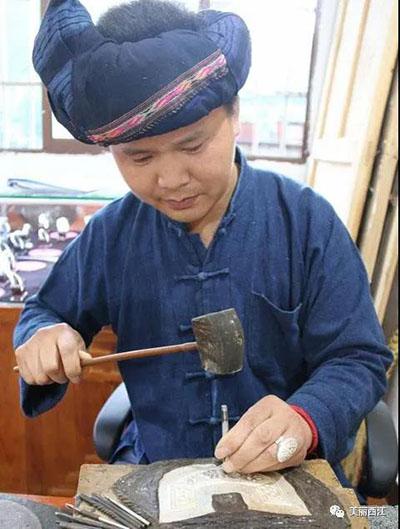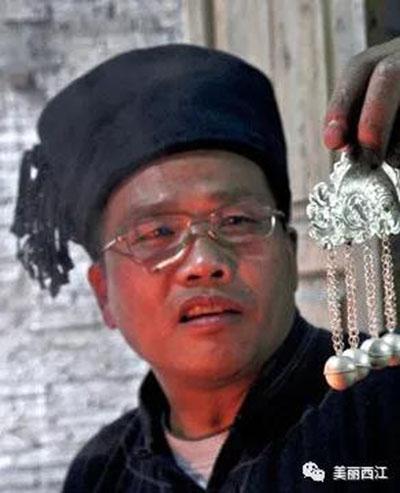 杨光宾,国家级非物质文化遗产项目苗族银饰锻造技艺代表性传承人;贵州省非物质文化遗产项目苗族银饰锻制技艺代表性传承人;贵州省工艺美术大师;贵州省高级工艺美术师。1963年生于贵州省雷山县西江镇控拜银匠世家,13岁便跟随父亲学习银饰制作技艺,15岁出师,为祖传第五代传人。