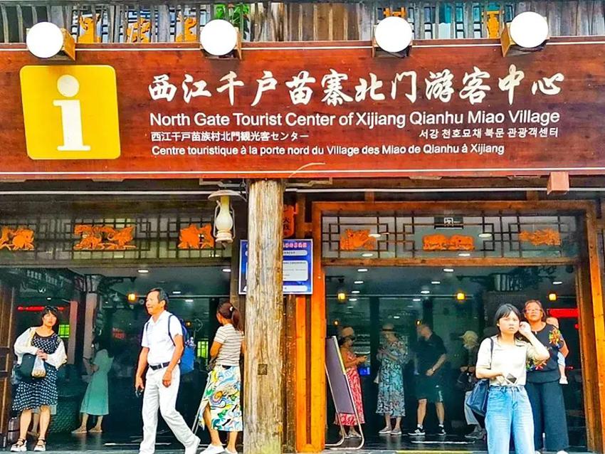 2、西江千户苗寨北门游客中心,西江盛典售票窗口可购票、取票。