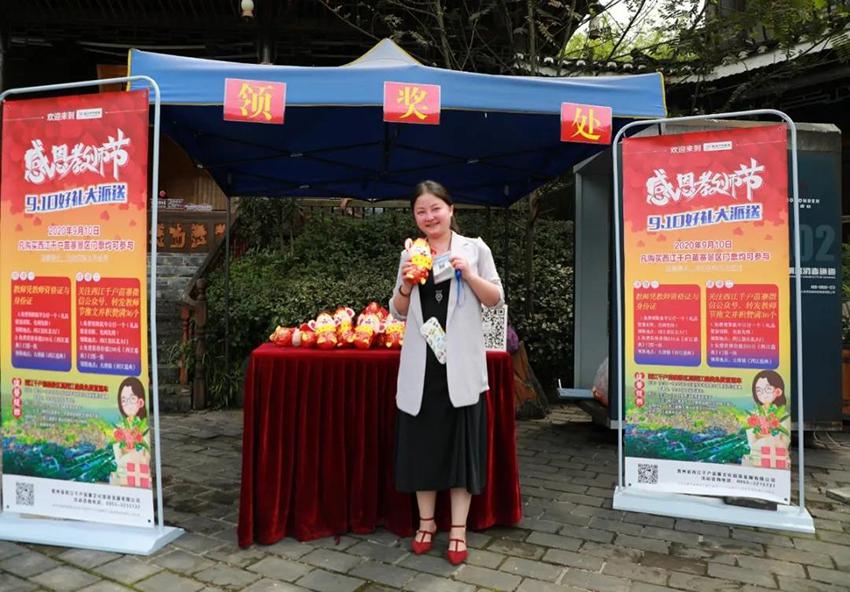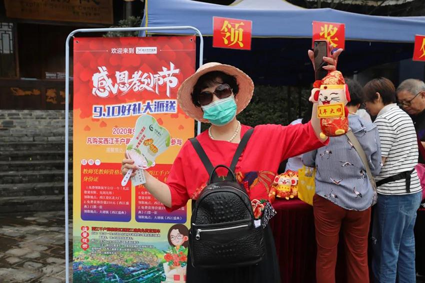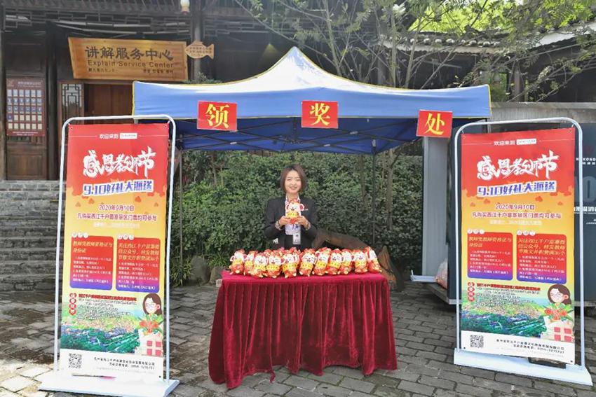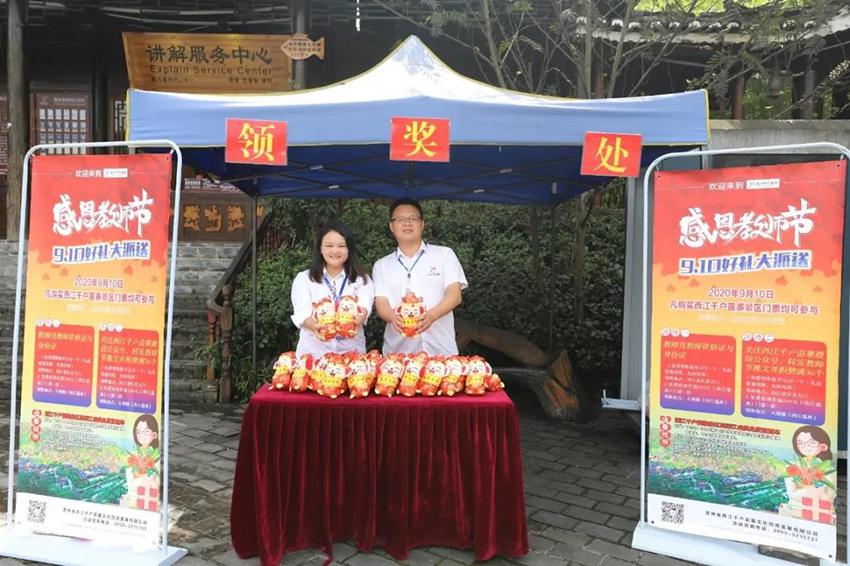 教师节老师游客们慕名而来,活动现场人员爆满!快来跟老师们一起手持礼品在西江打个卡吧。