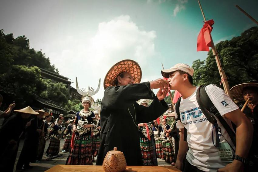 体验苗族最热情的苗族敬酒礼。“江山为主,人是客。”西江苗寨以山为友,以山为伴,大山给苗寨生存的一切,所以要像山一样对待每一位来客,为此用“高山流水”礼待客人,寓意热情像山一样高,友谊像水一样长。