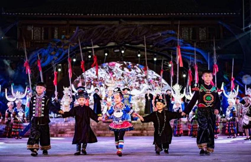 它是全国首部以苗族文化为内涵,依托大塘景区短裙苗之乡、铜鼓舞发源地的苗族民俗风情以及苗族美丽村寨的自然风貌为舞台背景的大型山水实景演出。