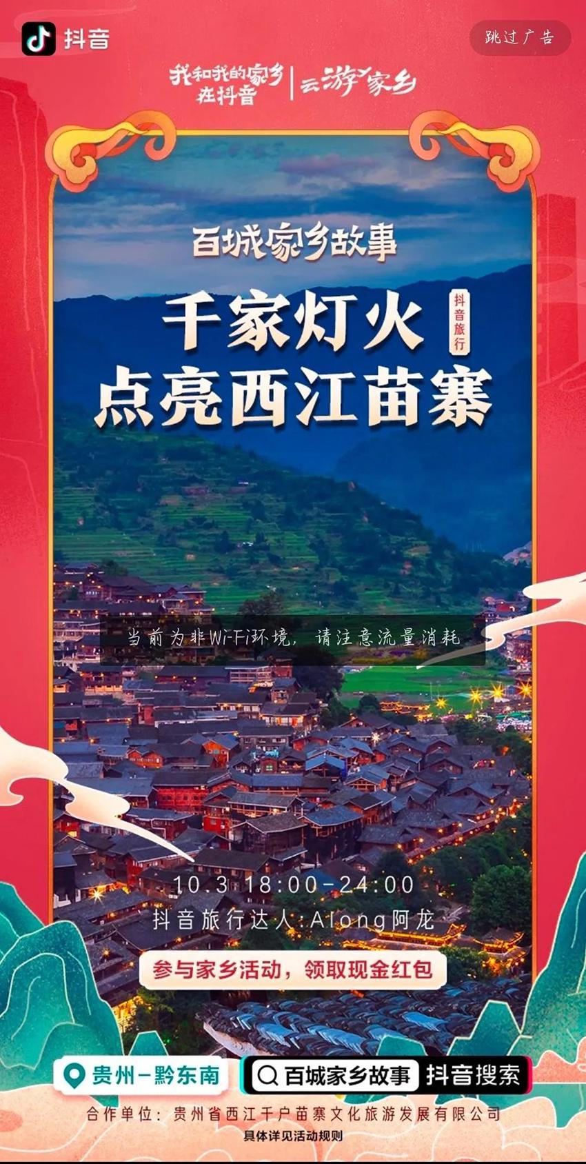 今年中秋节与国庆节“喜相逢”,在这个特殊的节日期间,抖音携手《我和我的家乡》电影,以“我和我的家乡在抖音”为主题,展开一系列丰富有趣的活动。10月3日,西江千户苗寨将代表贵州出战,让我们一起来看看点亮计划,为贵州点赞吧!