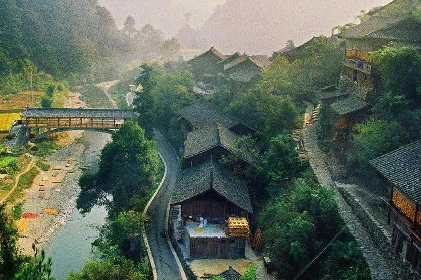 这里是我国举办首届奥运会圣火传递途径最为美丽的一段自然风光,四面群山环绕,背山面水,常常被笼罩在轻雾中,古色古香的吊脚楼淹没在茂林修竹中,蜿蜒的山路在绿林青蔓中忽隐忽现。