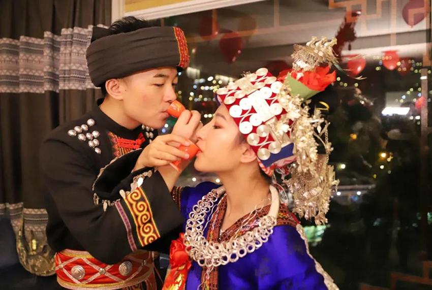 西江景区公司领导为参与活动过程中成功组队的搭档送上礼物(西江特色产品),并为他们送上祝福。参与活动的嘉宾换上盛装礼服,参与巡游队伍。增加彼此之间的了解,体验苗族古老淳朴的婚俗文化,感受苗家爱情的纯粹与美好。