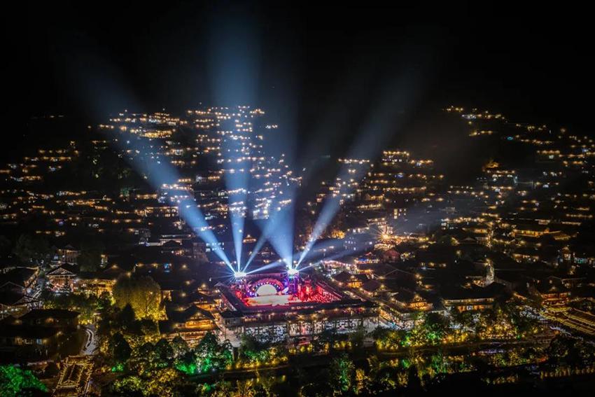 《西江盛典》大型山水 实景演出是依托雷山县大塘景区短裙苗之乡、铜鼓舞发源地 的苗族民俗风情以及苗族美丽村寨的自然风貌。《西江盛典》 以弘扬苗族文化为己任,透过苗族文化元素,打造雷山为世 界的苗族文化中心,促进旅游文化事业发展做出了积极贡 献,是贵州雷山向全世界介绍中国苗族文化的一大力作。