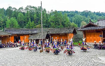 掌坳苗寨素有“铜鼓舞之乡”,“民族歌舞之乡”等美誉,村寨依坡而建,坡顶古木参天,绿树成荫,民族风情浓郁,铜鼓舞独树一帜。