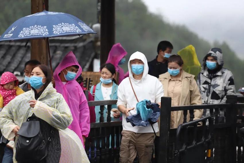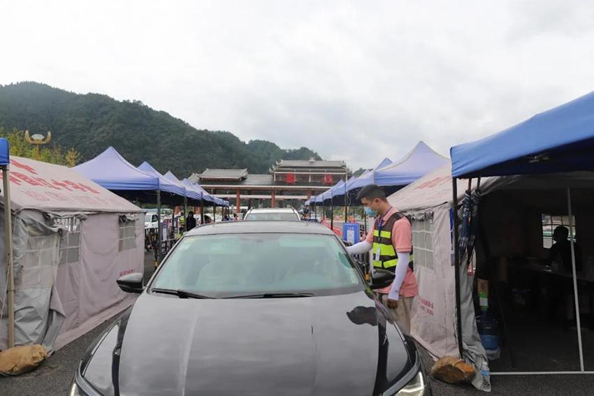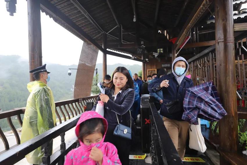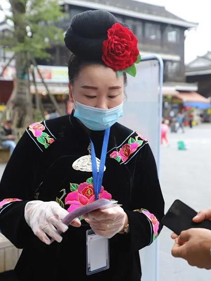 在景区游客服务中心出入口、观景台、等重要易聚集区域安排工作人员,引导游客佩戴口罩,扫健康码测温入园,并加强疏导,避免拥堵,确保防控到位。
